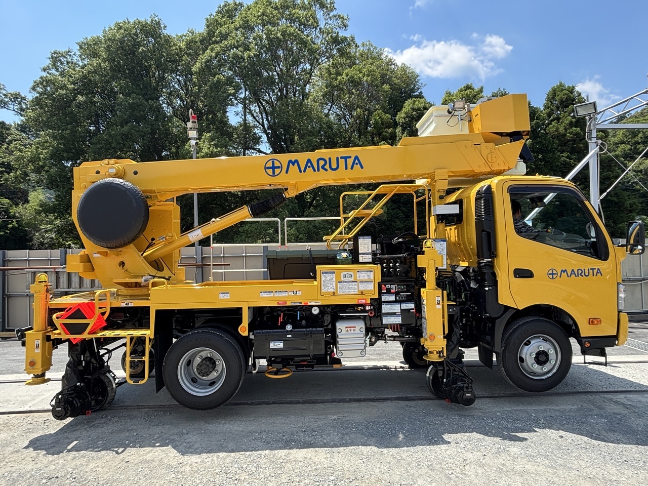 今までフォークリフトでは無かった高さ制限リミッター付きの機械。線路内での作業や、架線が有る所での作業に適している。